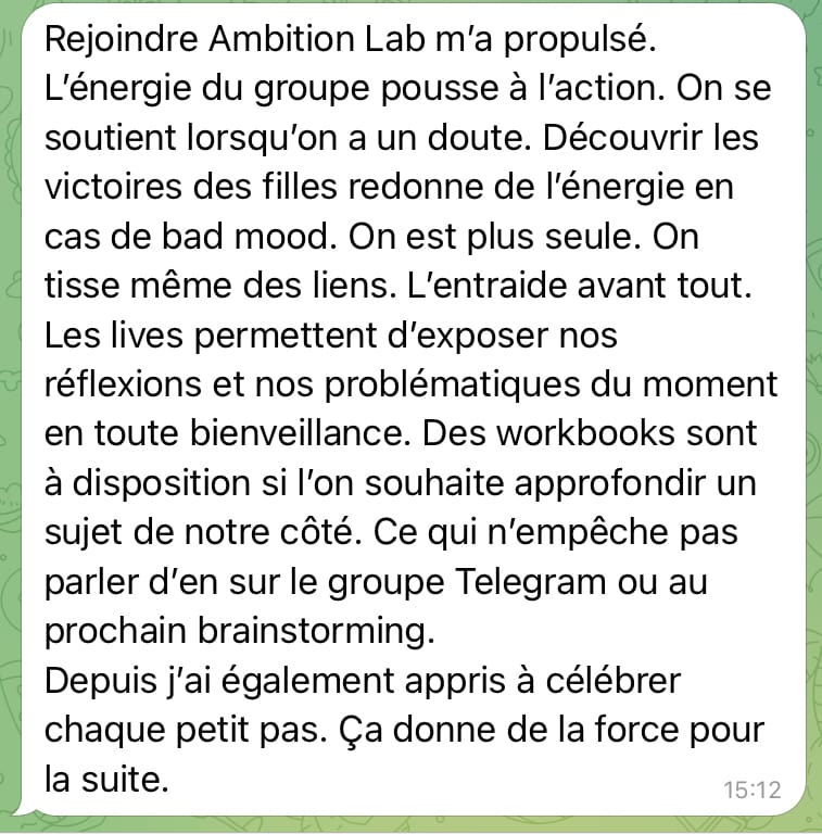Fais défiler pour comprendre ce que l'on vit dans Ambition LAB (peu importe l'offre choisie) !