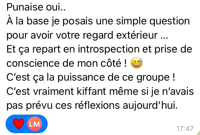Non. Le LAB n’est pas un coaching bis : je tiens le cadre et j’éclaire, mais la valeur clé vient du collectif, de l’intelligence collective de ma capacité à te faire bouger.