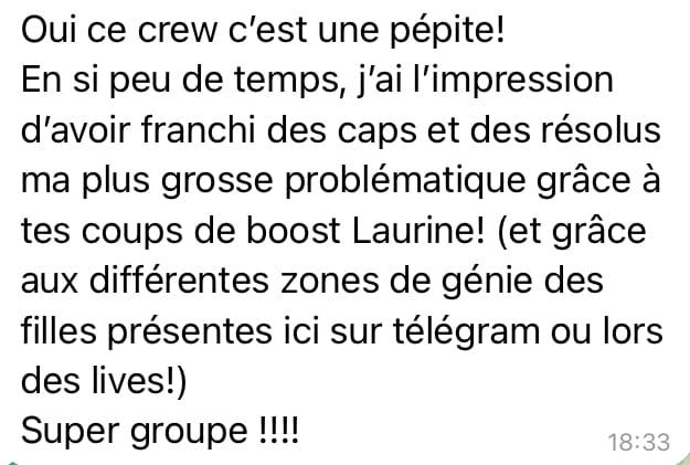 Pour le SAS, c'est à ton rythme, je suis disponible par Telegram pour te soutenir le long de ton avancée dans les modules, et le LAB est là en soutien pour ton business et ton énergie.
